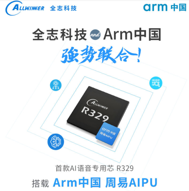 R329 是全志科技针对智能语音旗舰市场推出的一款高集成度 SoC ,搭载双核 A53 1.5G CPU,内置双核 400MHz HiFi4 和 800MHz AIPU(zhouyi) 0.25TOPS,可以满足各种智能语音产品的需求